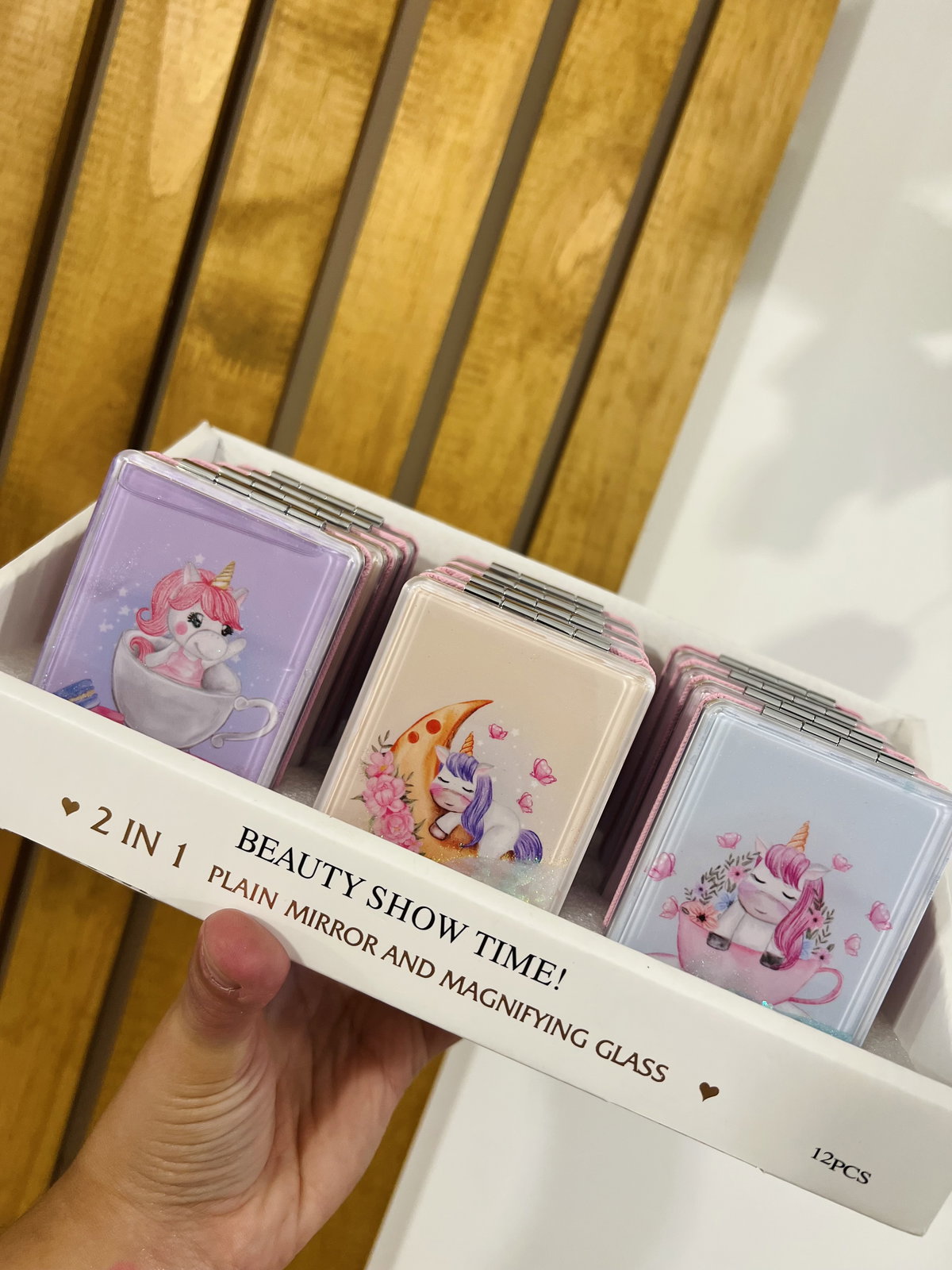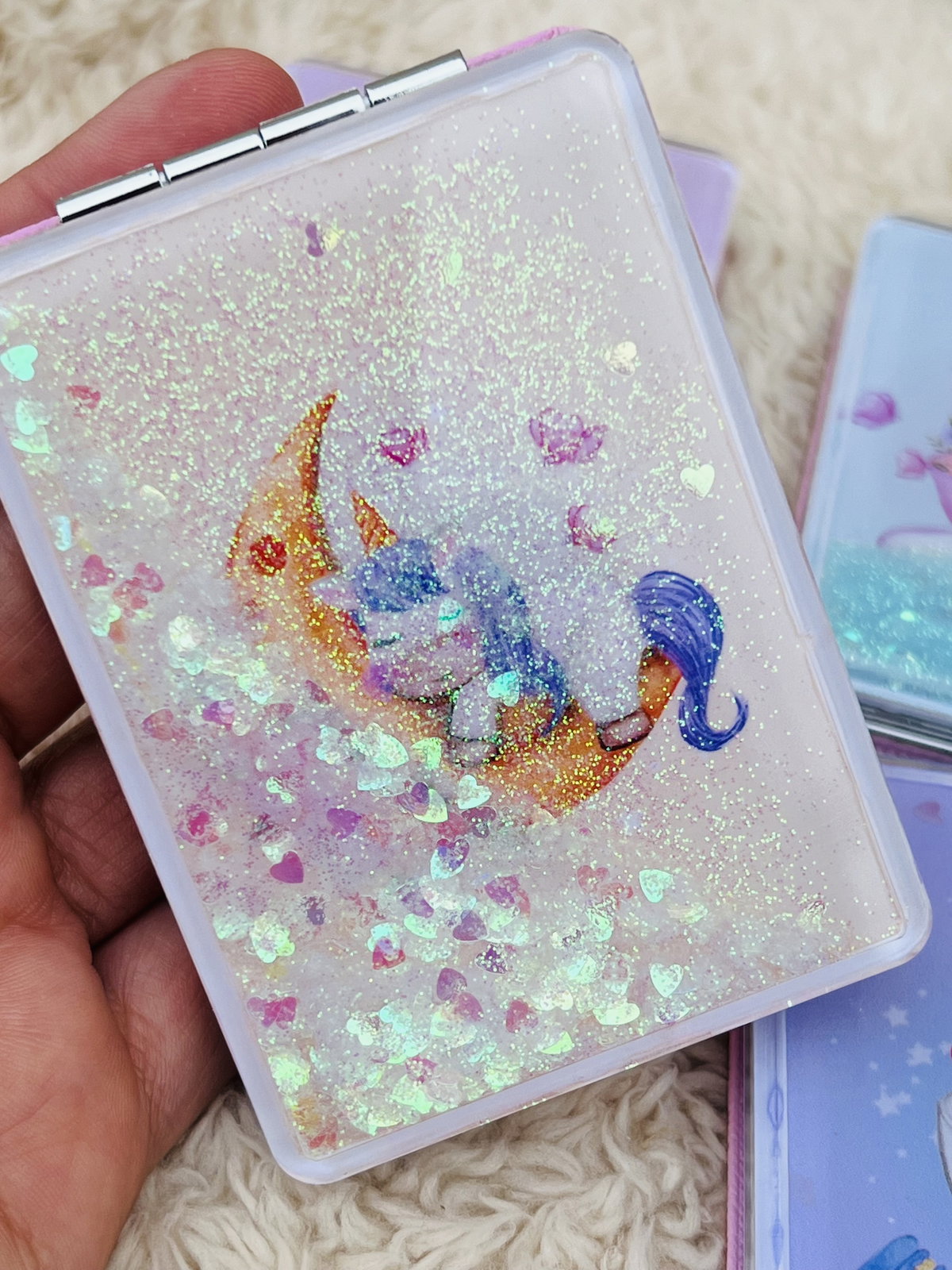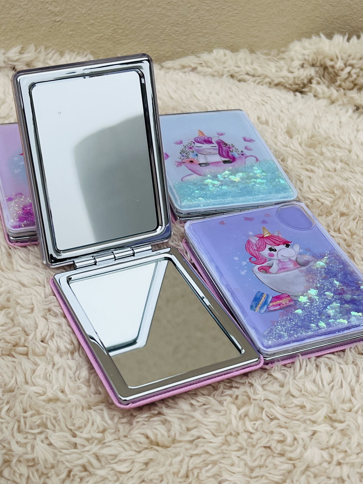 Espejo de cartera doble con glitter X3